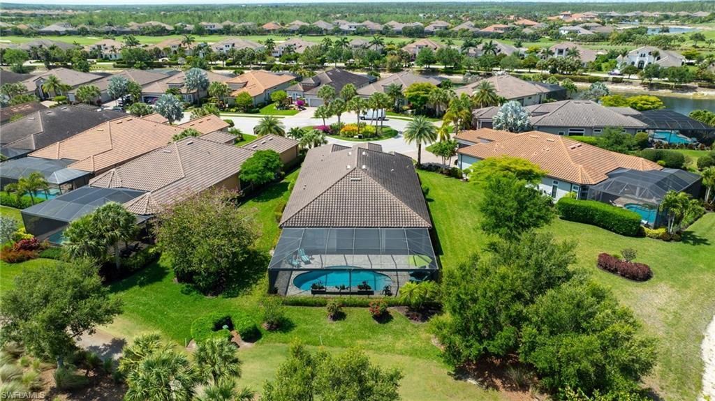 FULL GOLF MEMBERSHIP INCLUDED! A LOT to Love! This highly sought after “Palazzio” model is situated on a premium oversized (nearly half an acre/.39) pie shaped lot at the end of a quiet cul-de-sac street with expansive views of two lakes and the 14th green. The spacious floorplan features 3 Bedrooms plus Den, 3 full bathrooms, and nearly 3,100 sq ft of air conditioned living space accompanied by an oversized 550 sq ft covered lanai. With oversized rooms througho...FULL GOLF MEMBERSHIP INCLUDED! A LOT to Love! This highly sought after “Palazzio” model is situated on a premium oversized (nearly half an acre/.39) pie shaped lot at the end of a quiet cul-de-sac street with expansive views of two lakes and the 14th green. The spacious floorplan features 3 Bedrooms plus Den, 3 full bathrooms, and nearly 3,100 sq ft of air conditioned living space accompanied by an oversized 550 sq ft covered lanai. With oversized rooms throughout, the open great room floorplan creates a seamless flow for entertaining and comfortable living. Two sets of pocketing sliding glass doors invite you to the expanded lanai, where you can enjoy picturesque lake and golf course views, making this outdoor space an absolute retreat. The private pool area boasts a gas-heated pool with two waterfalls. For those who love outdoor living, the lanai is equipped with an outdoor kitchen and can be enclosed by electric motorized roll-down hurricane screens, ensuring year-round enjoyment. Inside, oversized 24”x24” porcelain tile floors flow throughout the common areas. The expanded kitchen features an abundance of raised-panel cabinetry, Cambria quartz countertops, a stylish tile backsplash, and top-of-the-line GE Café appliances, including a GAS range. Additional luxury finishes include: impact glass double front doors with matching sidelights; tandem style 3 car garage; expanded front guest bedroom with bay window; built-in cabinetry and desk in the den; special order lights/chandeliers; crown molding throughout; tankless GAS hot water heater; and more! This home is being offered FULLY FURNISHED so one can start enjoying the Esplanade lifestyle immediately without any inconvenience! Esplanade Golf & Country Club of North Naples offers a true “Lifestyle Community” with world-class amenities, including a resort pool with cabanas and the popular “Bahama Bar,” tennis, pickleball, bocce, a 14-mile network of bike/walking trails, and an 18-hole private golf course. The impressive 15,000 Sq Ft clubhouse features a restaurant, bar, wine-tasting room, wine lockers, and a Starbucks-style café. Best of all, the property’s landscaping, irrigation, golf membership, and all community amenities are covered under a quarterly fee of just $3,768—no additional fees or memberships required! Dont miss your opportunity to own this exceptional home in one of Naples’ most sought-after communities. Schedule your tour of this stunning home and Esplanade Golf & Country Club today! NON FLOOD ZONE/NO FLOOD INSURANCE REQUIRED/ZONE X!